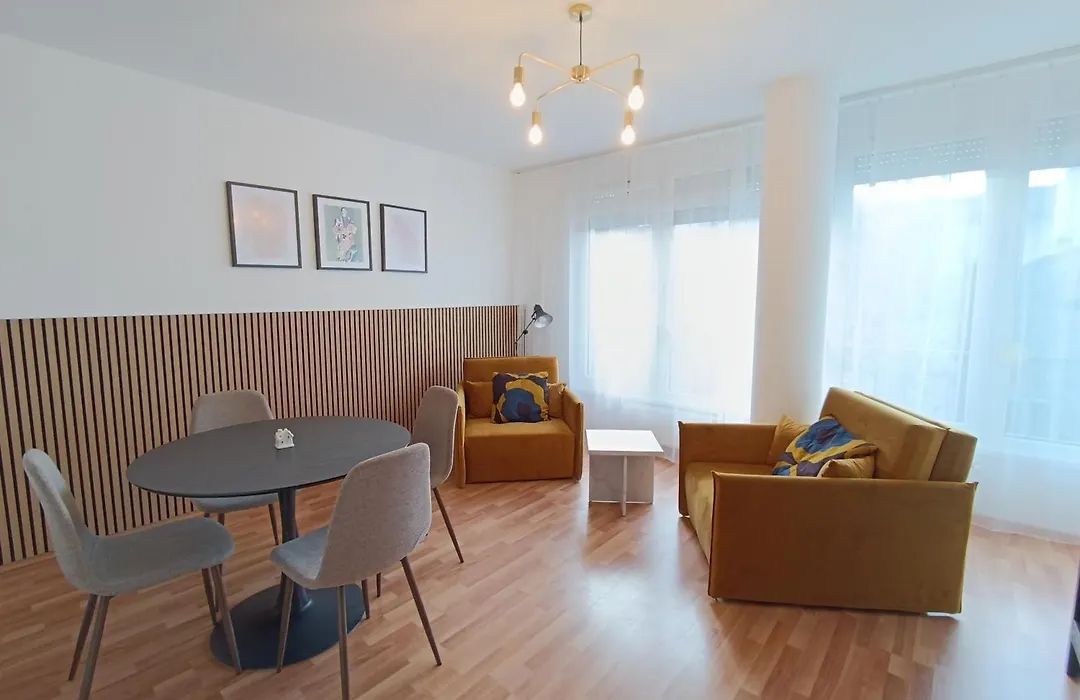 Oprócz udogodnień do samodzielnego przygotowywania posiłków, takich jak kuchnia, ten apartament oferuje gościom jadalnię, gdzie również można delektować się posiłkami. Przystanek Harminckettesek tere to nie więcej niż 150 m od tego apartamentu.